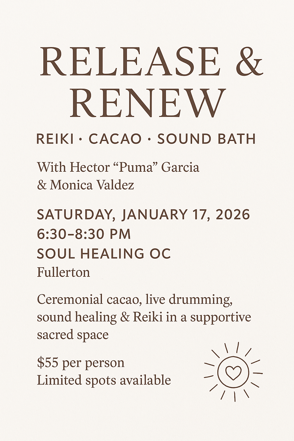 This collaborative evening blends the healing energies of ceremonial cacao, Reiki, sound healing, ceremonial drumming, and native flute, creating a safe and supportive space for reflection, release, and renewal.